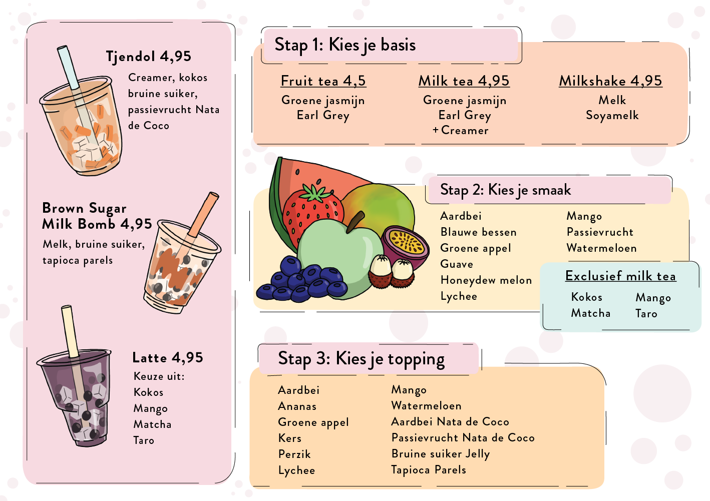 Toko Centraal in Nieuwegein was in need of a bubble tea menu and an appealing poster for in their shop window.